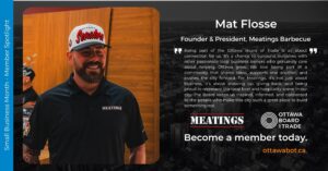 Beyond great food, Meatings represents the spirit of Ottawa entrepreneurship, a business built on connection, passion, and community pride. “Being part of the Ottawa Board of Trade is all about connection for us. It’s a chance to surround ourselves with other passionate local business owners who genuinely care about helping Ottawa grow. We love being part of a community that shares ideas, supports one another, and pushes the city forward. For Meatings, it’s not just about business, it’s about showing up, giving back, and being proud to represent the local food and hospitality scene in our city. The Board keeps us inspired, informed, and connected to the people who make this city such a great place to build something real,” said Mat Flosse, President of Meatings.