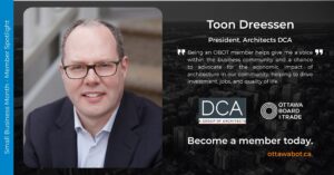 As valued members of our business community, Architects DCA exemplifies the blend of service, value, and results that drive Ottawa’s economic growth and quality of life. Their commitment to advocacy through the Ottawa Board of Trade highlights the important role architecture plays in shaping vibrant, sustainable communities. “Being an OBOT member helps give me a voice within the business community and a chance to advocate for the economic impact of architecture in our community, helping to drive investment, jobs, and quality of life.” – Toon Dressen, President, Architects DCA